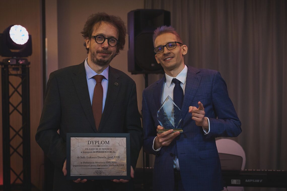 Gratulacje kierujemy także do Pana Profesora Łukasza Danela, który zajął zaszczytne trzecie miejsce w kategorii „Supermentor”. Obaj Panowie godnie reprezentowali Kolegium Gospodarki i Administracji Publicznej podczas tegorocznej gali.